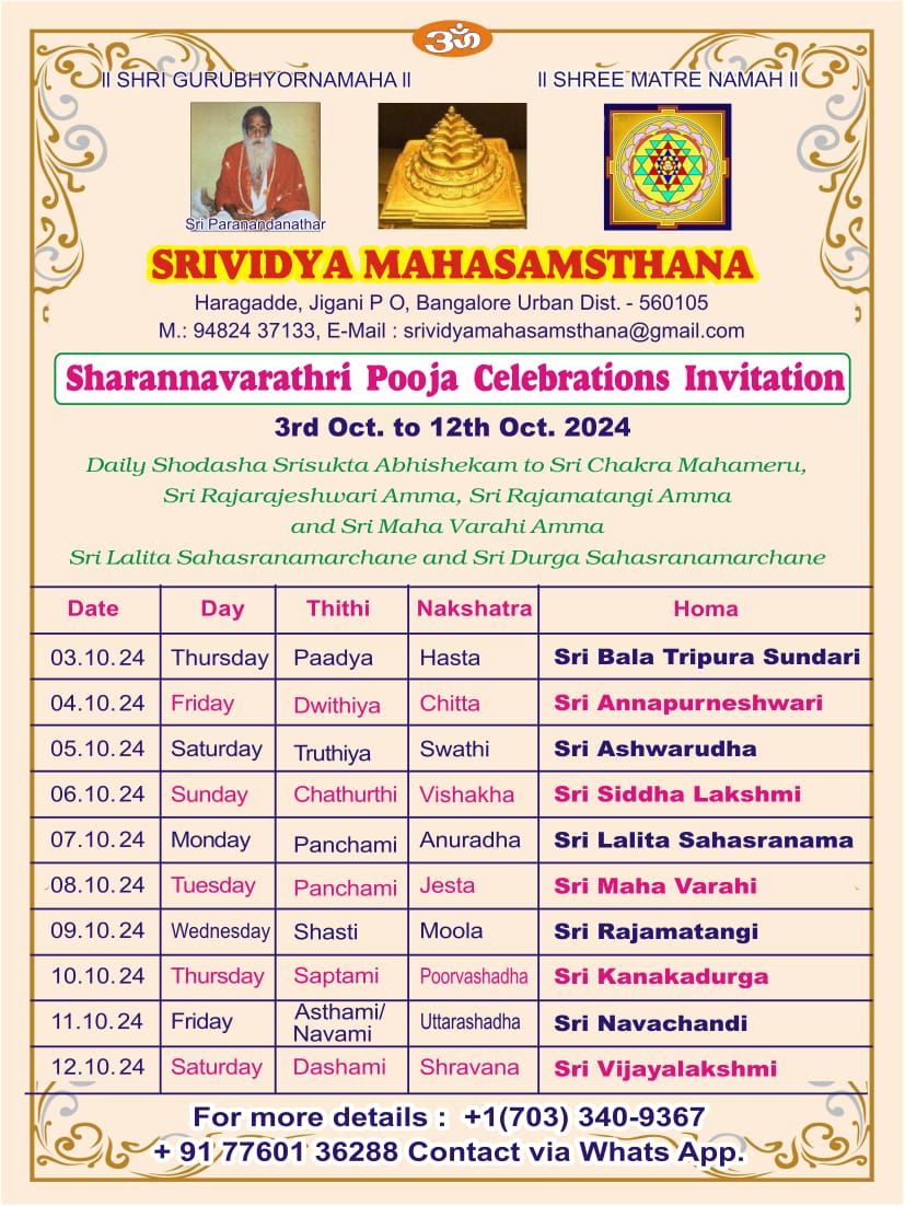 This post introduces the Pooja and Homa rituals that will be held at Srividya Mahasansthan during Sri Krodhi Nama Samvatsara Sharannavaratri.